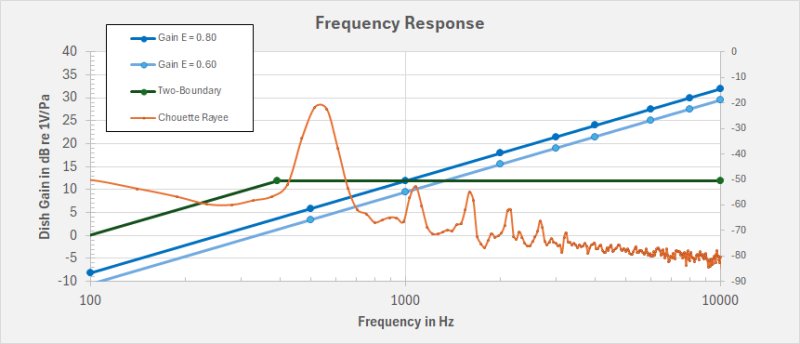 For some perspective, a 22 inch parabolic dish will also give an approximately 12 dB (1kHz) frequency dependent free gain. It is also highly directional and rather expensive. The two-boundary rig gives 12 dB across the spectrum and has a wide hemispherical field of view. There are times when that is exactly what is wanted.